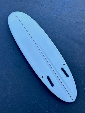 AN EARLY ITERATION OF THE FM THAT REALLY PROVED OUT - THIS 7’2 IS SCANNED OFF OF PUNKER PAT TOWERSEY’S MAGICAL SLED. SHAPED IN THE FIRST FEW MONTHS OF THE FM’S DEVELOPMENT, IT SPORTS A LESS PRONOUNCED TRIPLANE AND A STRAIGHT CHANNEL - THE SOFTENED FEATURES MAKE IT A BIT MORE FORGIVING AND RIPPABLE FOR SLOWER SURF, AND STILL JUST AS CONFIDENT AND CAPABLE OF ON-RAIL-POWER AS ANY VARIATION SINCE.